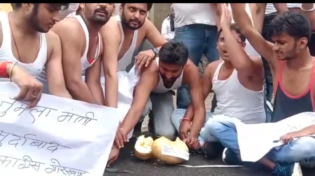 गोरखपुर ।। कांग्रेस के युवा कार्यकर्ताओ ने देश मे बढ़ रही बेरोजगारी को नियंत्रित करने में असफल व युवाओं को नौकरी देने का वादा पूरा न करने पर पीएम मोदी के जन्मदिन को बेरोजगार दिवस के रूप में मानकर विरोध प्रदर्शन किया । इन लोगो ने बाकायदा केक की जगह कद्दू काटकर जन्मदिन मनाया और मोदी योगी के खिलाफ जमकर नारेबाजी की ।कांग्रेस शीर्ष नेतृत्व के निर्देश पर आज युवा कांग्रेसी कार्यकर्ताओं ने अर्धनग्न होकर पैदल शास्त्री चौराहे से सेवायोजन कार्यालय तक मार्च किया।इस दौरान कांग्रेसी कार्यकर्ताओं ने बीजेपी सरकार और देश के प्रधानमंत्री के खिलाफ जमकर नारेबाजी की । युवा कांग्रेस के जिला अध्यक्ष ने कहा कि (आज)17 सितंबर को प्रधानमंत्री नरेंद्र मोदी का जन्मदिन है।शीर्ष नेतृत्व के निर्देश पर आज के इस दिन को राष्ट्रीय बेरोजगारी दिवस के रूप में मना रहे है।क्योंकि जब से केंद्र में मोदी जी की सरकार बनी है तभी से देश में बेरोजगारी बढ़ी है।इसलिए इस दिन को हम लोग राष्ट्रीय बेरोजगारी दिवस के रूप में मना रहे है।