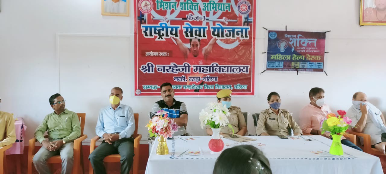नगरा, बलिया ।। मिशन शक्ति फेज तीन के अन्तर्गत श्री नरहेजी पीजी कालेज नरही में एनएसएस के दोनों इकाइयों के तत्वाधान में शनिवार को नारी सुरक्षा अभियान पर कार्यशाला का आयोजन किया गया। कार्यशाला में नगरा थाने की दो महिला कांस्टेबल उपस्थित होकर महिला सुरक्षा से सम्बन्धित टिप्स दिए।