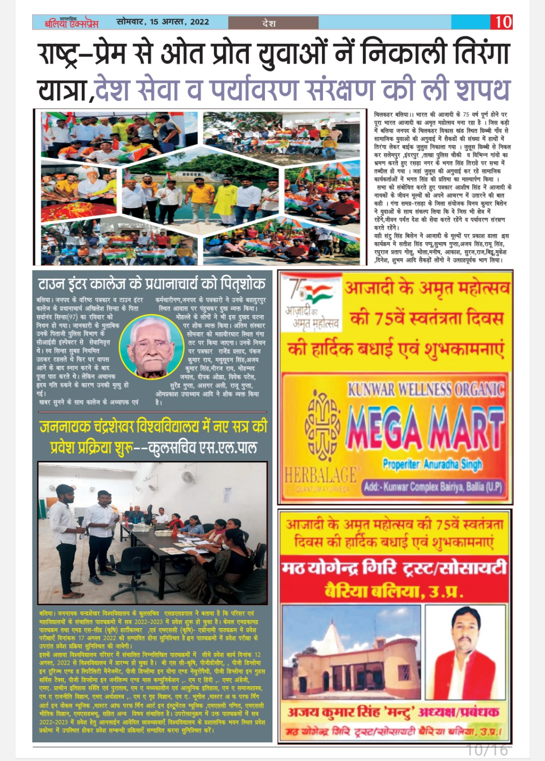 बलिया एक्सप्रेस 15 अगस्त 2022 अंक