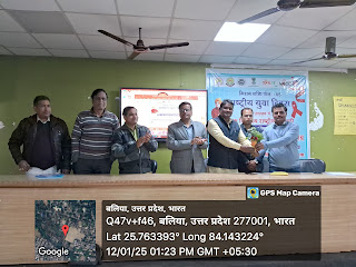 बलिया।। 12.01.2025 को श्री मुरली मनोहर टाउन स्नातकोत्तर महाविद्यालय, बलिया के प्राचार्य प्रोफेसर रवीन्द्र नाथ मिश्र के निर्देशन एवं मार्गदर्शन तथा रेड रिबन क्लब एवं रा0से0यो0 की पाँचों इकाइयों के संयुक्त तत्वावधान में स्वामी विवेकानंद जी के जन्मदिवस एवं *राष्ट्रीय युवा दिवस* के अवसर पर *"एड्स जागरूकता एवं रोकथाम में युवाओं की भूमिका"* विषय पर एक गोष्ठी का आयोजन महाविद्यालय के राजेन्द्र प्रसाद सभागार में किया गया। *कार्यक्रम की अध्यक्षता* जननायक चंद्रशेखर विश्वविद्यालय बलिया के *कृषि संकाय के डीन प्रोफेसर धर्मेंद्र सिंह* ने किया। अनुवांशिकी एवं पादप प्रजनन विभाग के विभागाध्यक्ष प्रोफेसर बृजेश सिंह ने एड्स संबंधी जागरूकता पर विस्तार से प्रकाश डाला। हिंदी विभाग के प्रोफेसर जैनेंद्र कुमार पाण्डेय नें स्वामी विवेकानंद जी के जीवन दर्शन पर प्रकाश डाला। मृदा रसायन विभाग के विभागाध्यक्ष प्रोफेसर अशोक कुमार सिंह ने स्वामी विवेकानंद के जीवन दर्शन एवं मूल्य पर प्रकाश डालते हुए उपस्थित स्वयंसेवक एवं स्वयंसेविकाओं को बताया कि जीवन में सफलता के लिए एकाग्रता एवं अनुशासन बड़ा महत्व होता है।