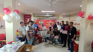 लखनऊ।। इंडियन रेड क्रॉस सोसाइटी लखनऊ एवं मुथूट ग्रुप के संयुक्त तत्वावधान में राम मनोहर लोहिया अस्पताल के सहयोग से मुथूट ग्रुप के लेखराज स्थित् कार्यालय पर एक रक्तदान शिविर आयोजित किया गया। रक्तदान शिविर का उद्घाटन चेयरमैन ओ. पी. पाठक ने किया। इस अवसर पर ओ. पी. पाठक ने बताया कि रक्तदान से बड़ा कोई दान नहीं है। हम रक्तदान कर किसी की जान को बचा सकते हैं, इसलिए समय-समय पर रक्तदान अवश्य करना चाहिए। रक्तदान करने से हमारे शरीर में किसी भी प्रकार की कोई कमजोरी नहीं आती हैं बल्कि 24 घंटे में कहीं ज्यादा रक्त बनता है तथा शरीर भी स्वस्थ रहता है।